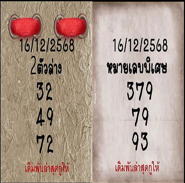 เลขเด็ดสำหรับหวยงวดวันที่ 16 ธันวาคม 2568 มาแล้ว! นี่คือเลขเด็ดที่คาดการณ์ไว้สำหรับสลากกินแบ่งรัฐบาลไทย ทั้งเลข 2 ตัวและ 3 ตัว สำหรับรางวัลบนและล่าง ตรวจสอบเลขเด็ดสำหรับงวดวันที่ 16 ธันวาคม 2568ได้เลย นักเสี่ยงโชคทั้งหลายโปรดดู!