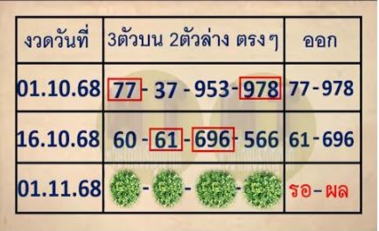 ถ่ายทอดสดหวย!! 3ตัวบน 2ตัวล่าง หวย 2ตัวล่าง 3ตัวบน ตรงๆ งวดวันที่ ​1 พฤศจิกายน 2568