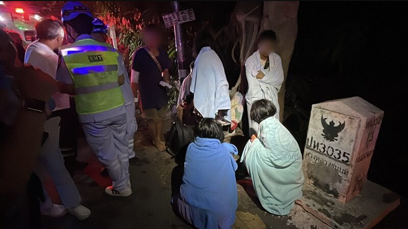 สอบถามผู้บาดเจ็บ ทราบว่า ทั้งคนขับและผู้โดยสารรวมทั้งหมด 13 คน พากันเดินทางไปทำบุญที่ จ.ชลบุรี ก่อนเกิดเหตุกำลังมุ่งหน้าพากันกลับที่พัก แต่รถเสียหลักชนแล้วพุ่งตกลงไปในคลองเพื่อนๆจมน้ำหายไป 6 คน รวมทั้งเอกสารและหนังสือเดินทาง