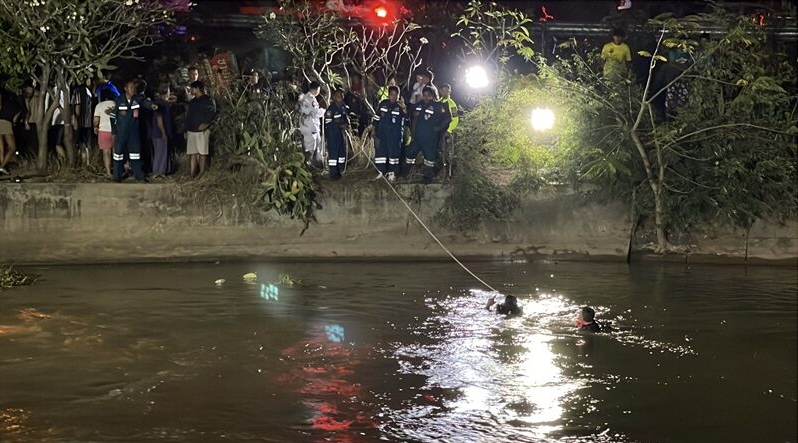 เบื้องต้นเจ้าหน้าที่คาดว่า คนขับน่าจะไม่ชินเส้นทางเพราะเส้นทางที่ขับมาเป็นเส้นทางตรง เมื่อมาถึงที่เกิดเหตุถนนเป็นทางโค้งเพราะต้องหลบคลองส่งน้ำทำให้พุ่งชนแบร์ริเออร์ตกคลอง ขณะที่ทีมนักประดาน้ำอาสาสมัครมูลนิธิป่อเต็กตึ๊งลงค้นหาและสามารถนำร่างผู้เสียชีวิตขึ้นมาได้แล้ว 3 ราย ขณะนี้อยู่ระหว่างค้นหาและนำร่างผู้เสียชีวิตขึ้นมาจากน้ำ ก่อนให้รถยกนำรถกระบะขึ้นมาจากคลองต่อไป