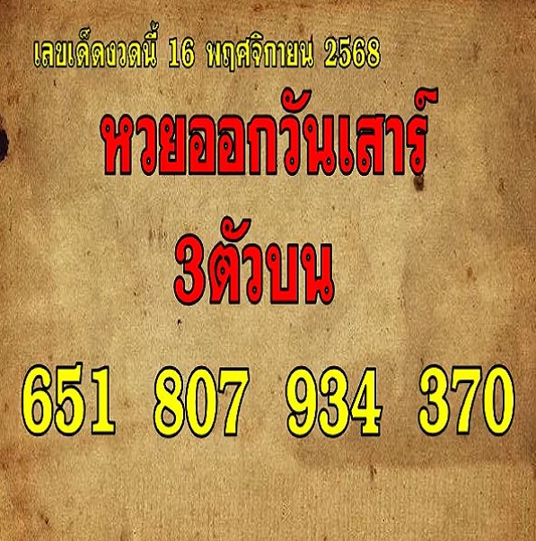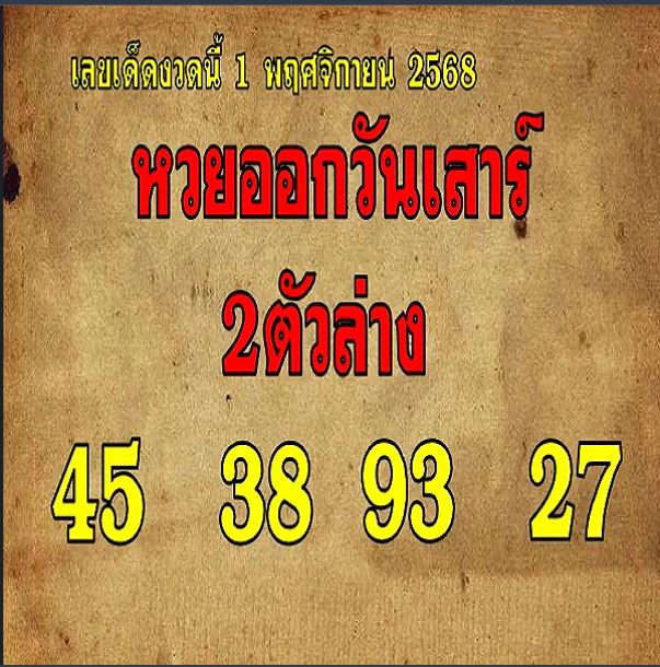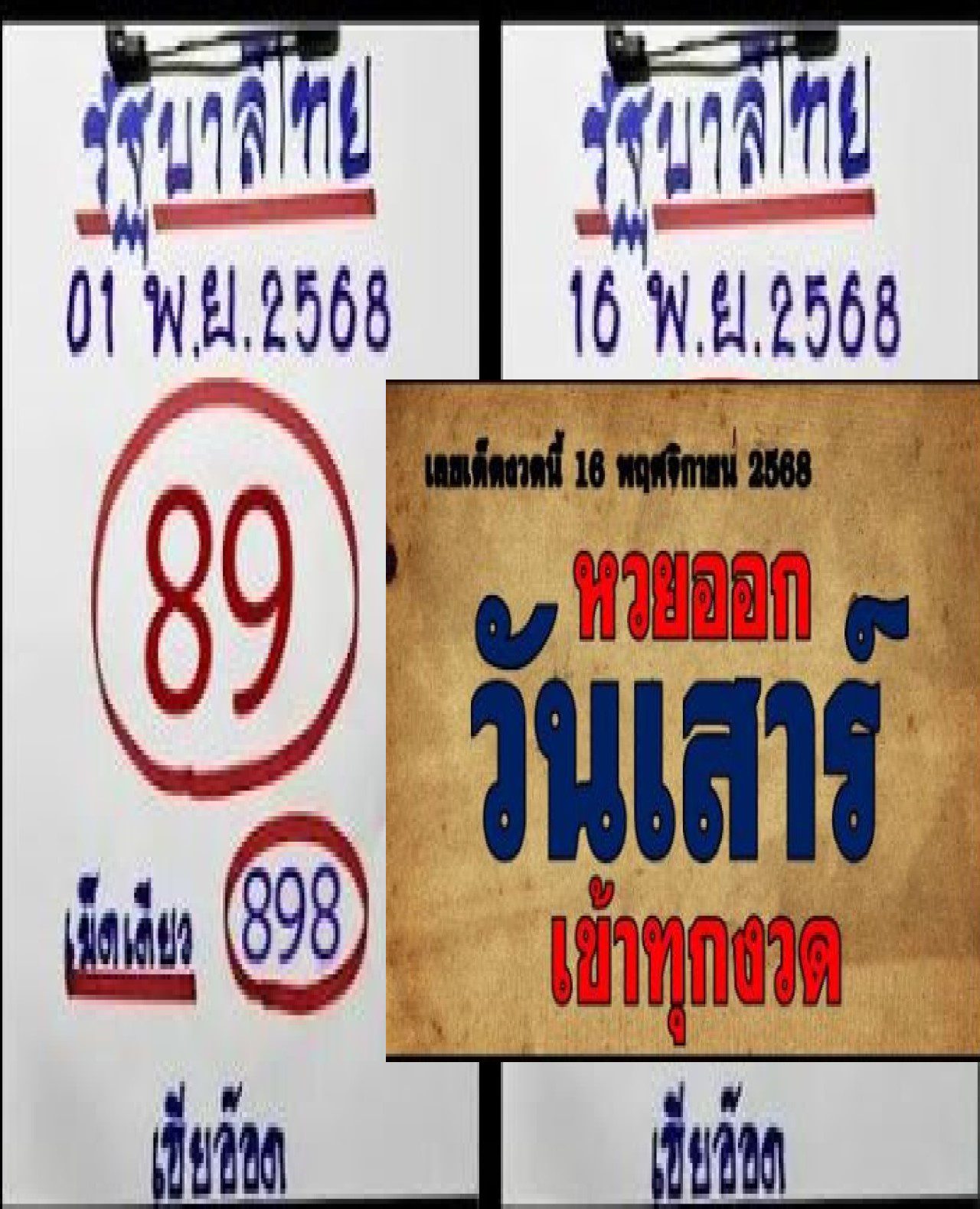 เลขเด็ด งวดนี้16 พฤศจิกายน 2568 มาแล้ว สำหรับแนวทางข้อมูล หวยรัฐบาลไทย ชุด 2 ตัว 3 ตัวบนและล่าง หวยเด็ดเลขเด็ดงวดนี้ งวดประจำวันที่1 พฤศจิกายน 2568ไปดูกันเลยว่างวดนี้ มีเลขเด็ดอะไรที่น่าสนใจกันบ้าง คอหวยเชิญรับชมกันได้เลยค