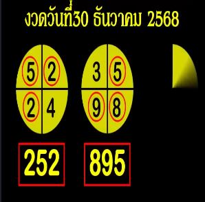 เลขเด็ดสำหรับหวยงวดวันที่ 30 ธันวาคม 2568 มาแล้ว! นี่คือเลขเด็ดที่คาดการณ์ไว้สำหรับสลากกินแบ่งรัฐบาลไทย ทั้งเลข 2 ตัวและ 3 ตัว สำหรับรางวัลบนและล่าง ตรวจสอบเลขเด็ดสำหรับงวดวันที่ 30 ธันวาคม 2568ได้เลย นักเสี่ยงโชคทั้งหลายโปรดดู!