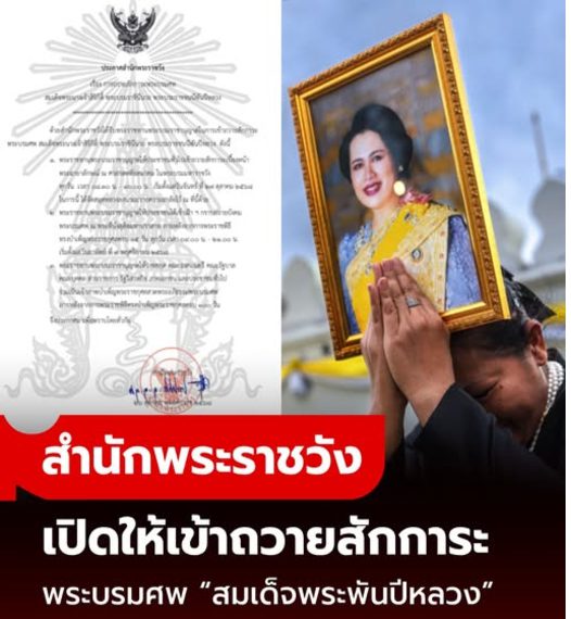 ประกาศสำนักพระราชวัง เปิดให้ประชาชนเข้าถวายสักการะพระบรมศพ “สมเด็จพระพันปีหลวง”