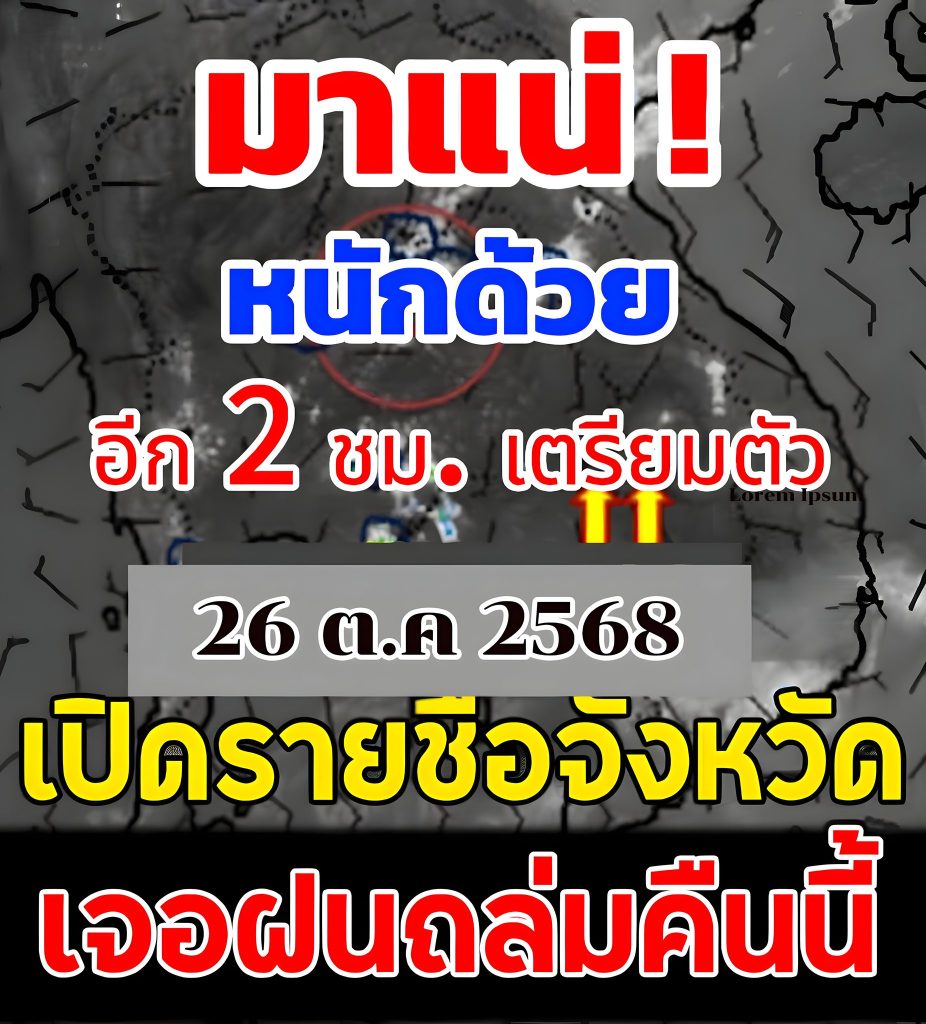26 ตุลาคม 2568 พยากรณ์อากาศ 24 ชั่วโมงข้างหน้า ภาคใต้ตอนกลางถึงตอนล่างมีฝนตกหนักบางแห่ง ขอให้ประชาชนในบริเวณดังกล่าว โดยเฉพาะบริเวณจังหวัดประจวบคีรีขันธ์ ชุมพร สุราษฎร์ธานี ระนอง พังงา ระวังอันตรายจากฝนฟ้าคะนอง ฝนตกหนักและฝนที่ตกสะสม รวมทั้งเพิ่มความระมัดระวังในการสัญจรผ่านบริเวณที่มีน้ำท่วมขัง เนื่องจากร่องมรสุมกำลังค่อนข้างแรงพาดผ่านภาคใต้ตอนล่าง ประกอบกับมรสุมตะวันออกเฉียงเหนือกำลังปานกลางพัดปกคลุมอ่าวไทยตอนบน ภาคใต้ตอนบน และทะเลอันดามันตอนบน