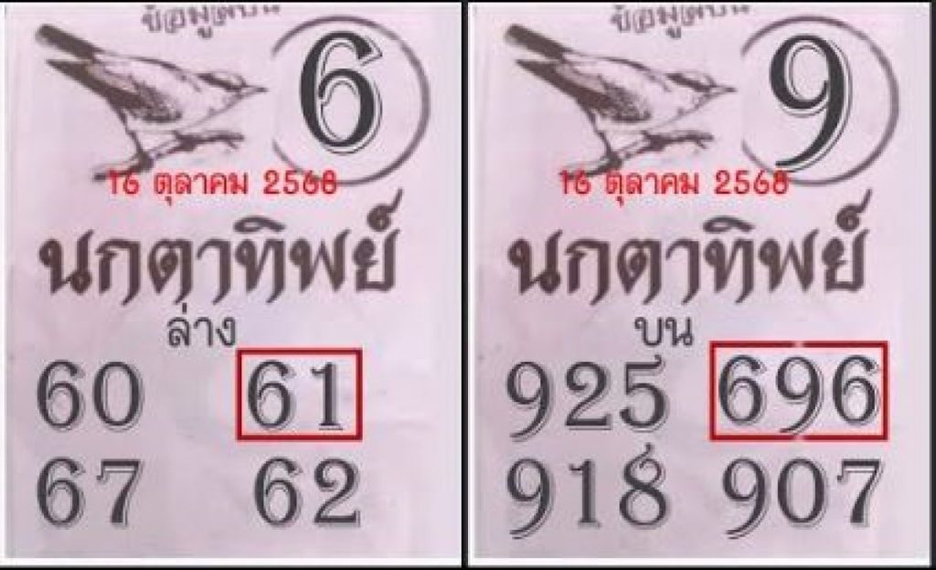 ถ่ายทอดสดหวย!!3ตัวบน 2ตัวล่าง หวยซองนกตาทิพย์ 3ตัวบน 2ตัวล่าง งวดนี้มาอีก 1 พฤศจิกายน 2568