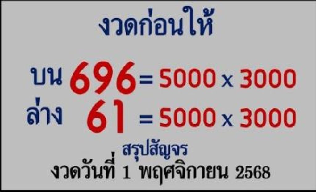ถ่ายทอดสดหวย 3ตัวบน 2ตัวล่าง เจ้ามือสะดุ้ง 3บน-2ล่างหางเดียว งวดประจำวันที่ 1 พฤศจิกายน 2568