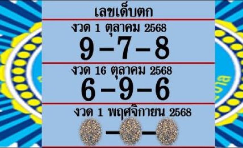 978*696!!ถ่ายทอดสดหวย มาแล้วใครรอ..ชุด3ตัว พิเศษ จัดให้ตรุงๆ งวด 1 พฤศจิกายน 2568