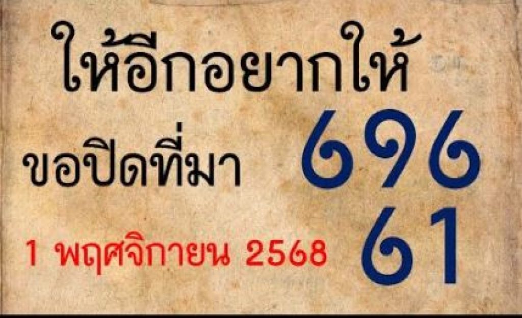 696*61!!หวยรวยล้าน% เลขเด็ด หวยอั้น!! เลขอั้น…เจ้ามือไม่รับ งวดวันที่ 1 พฤศจิกายน 2568